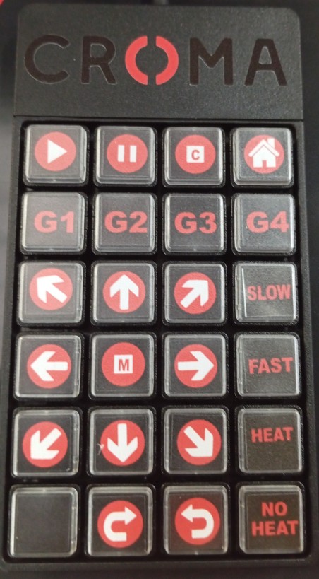 Réglage de la vitesse, pilotage du plateau tournant dans les deux sens, démarrage / interruption / arrêt de la découpe, remise en place du fil selon les positions mises en mémoire dans la machine.